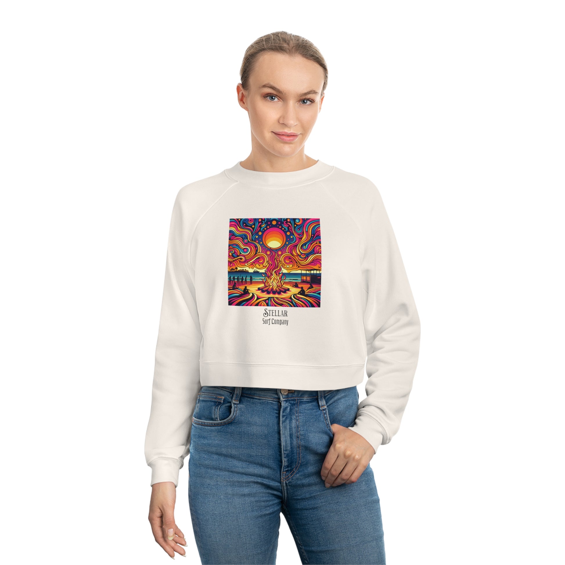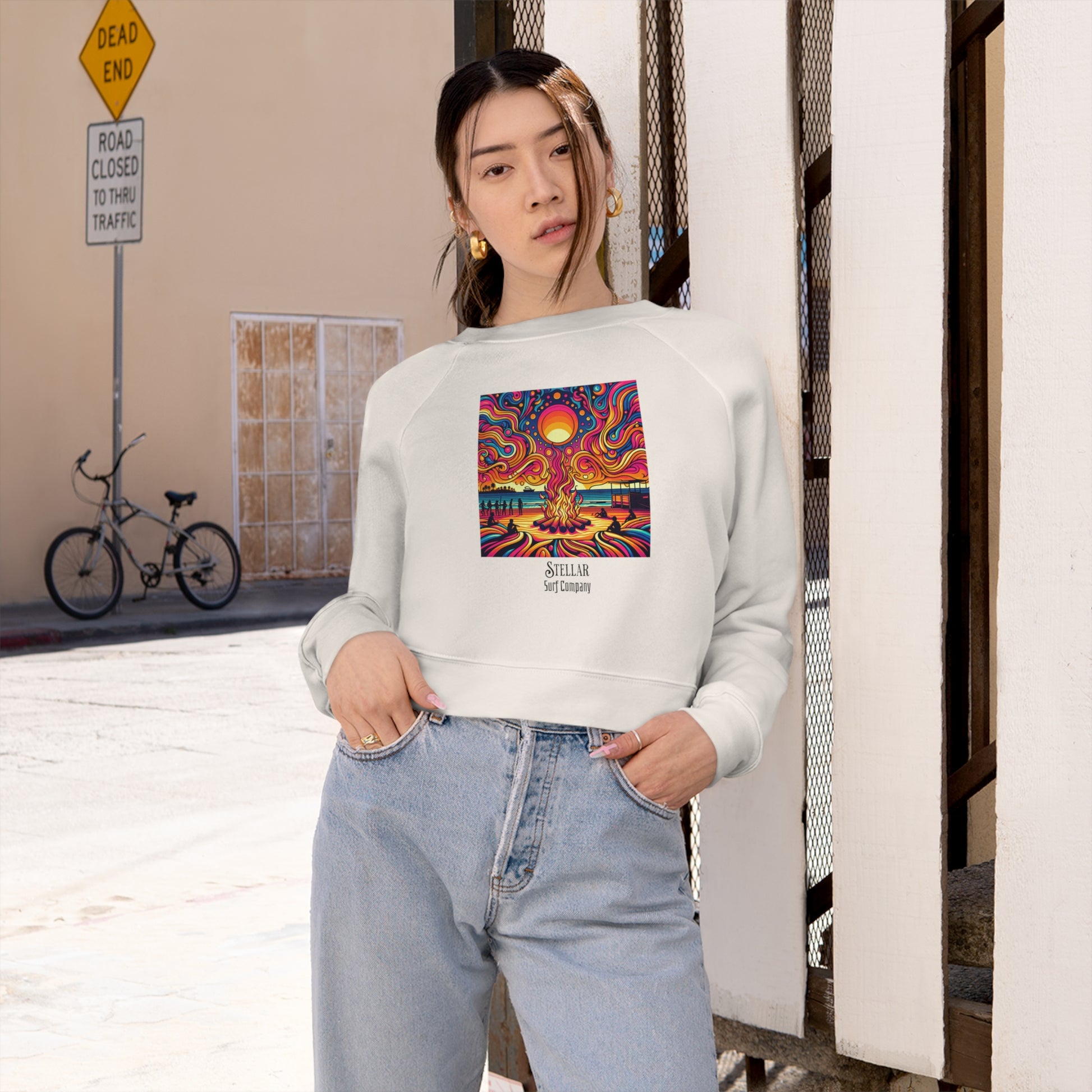 This women's cropped fleece pullover is made of a blend of 52% Airlume ring-spun cotton and 48% polyester fleece, creating a soft and durable fabric. Featuring contoured seams, the sweatshirt has a mid-length and relaxed fit.